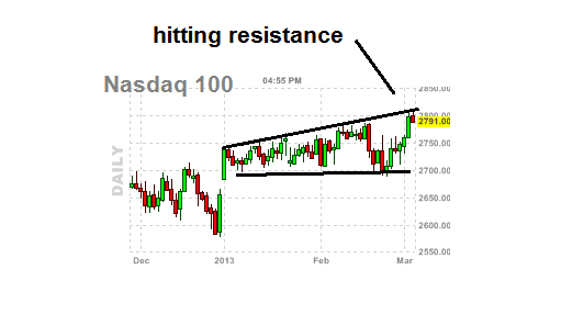 A troubling nasdaq chart really? We you must realize that the nasdaq chart is the leader of the market. While the other indicies are hitting major highs, and dow jones record highs, the nasdaq was lagging.